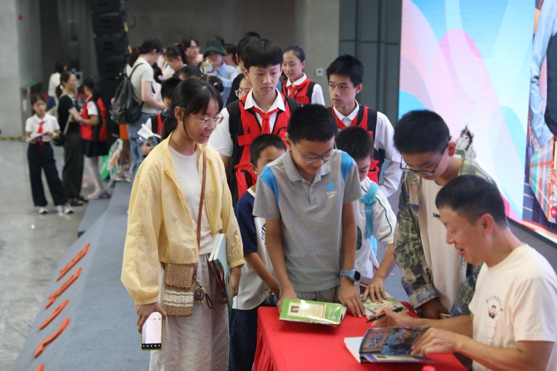 文化市集汇聚集团各单位精品资源,涵盖图书展销、名家对谈、非遗手作、互动体验等丰富内容。中国首位迪士尼签约作家杨鹏携《装在口袋里的爸爸》与读者见面,分享创作心得。考古学家郑嘉励与知识博主“眉的说”展开深度对谈,带领观众探寻“考古与文字中的乡愁”。浙江新华全省门店带来“匠心茶事·风雅杭州”“绍祚工巧·扇染江南”等非遗文化展示,彰显浓郁地域特色。“小小科学家”趣味实验区、葫芦脸谱工坊吸引大小朋友驻足尝试,“火把精品解读书墙”为市民打开数字阅读新场景。现场还提供机器狗互动、AI体测、惠民义诊、免费快照等服务,真正实现文化惠民。