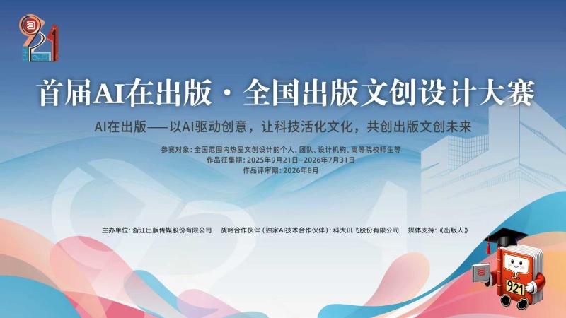 开幕式上,浙版集团主题形象吉祥物首次正式亮相,以书本为造型灵感,身着中式立领服装,手中高举一本小书,圆润可爱,萌翻全场。集团集结了涵盖图书品牌、知识平台、智慧服务等在内的12个核心品牌,员工子女化身“品牌小模特”,以童趣走秀形式生动展示品牌形象。会上,浙版集团与科大讯飞联合发起的“AI在出版·全国出版文创设计大赛”正式启动,以科技赋能文创,探索融合发展新路径。