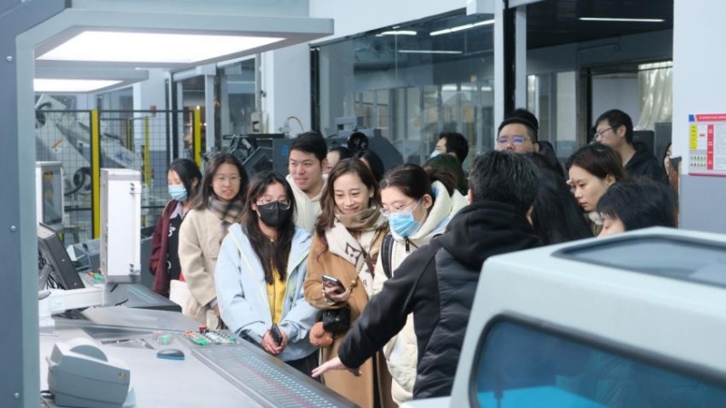 活动前期,集团团委广泛征集编印协同中的实际难题,梳理出30条痛点堵点,形成需求清单反馈至印刷集团,为活动内容设计提供了精准导向。在印刷集团下沙基地,大家先后走进平版印刷中心、轮转联动中心、精平装中心等核心生产区域,近距离观摩印前拼版、四色印刷、无线胶订等全流程工艺,对图书的印制过程有了直观而深刻的认识。