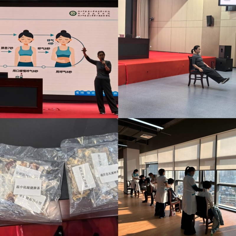 浙江省新华医院健康生活方式医学中心医生吴玉琴聚焦“主动健康,从体质到体重”展开系统讲解,根据20余年临床工作经验,结合天干地支、数据分析等内容,帮助大家辨识个人体质,找到健康问题所在,并分享了科学饮食、体重管理、压力调节与睡眠改善等方面的实用方法。她的讲解深入浅出,结合现实案例,为大家提供了科学并易于操作的饮食、运动与中医药调理方法。互动环节,吴医生带领现场人员找到适合自身体质的运动方式。同时,4名专业理疗师为员工提供肩颈按摩服务,通过按、揉、捏、捶等专业手法,有效缓解员工肩颈疲劳,为下午的工作注入满满活力。